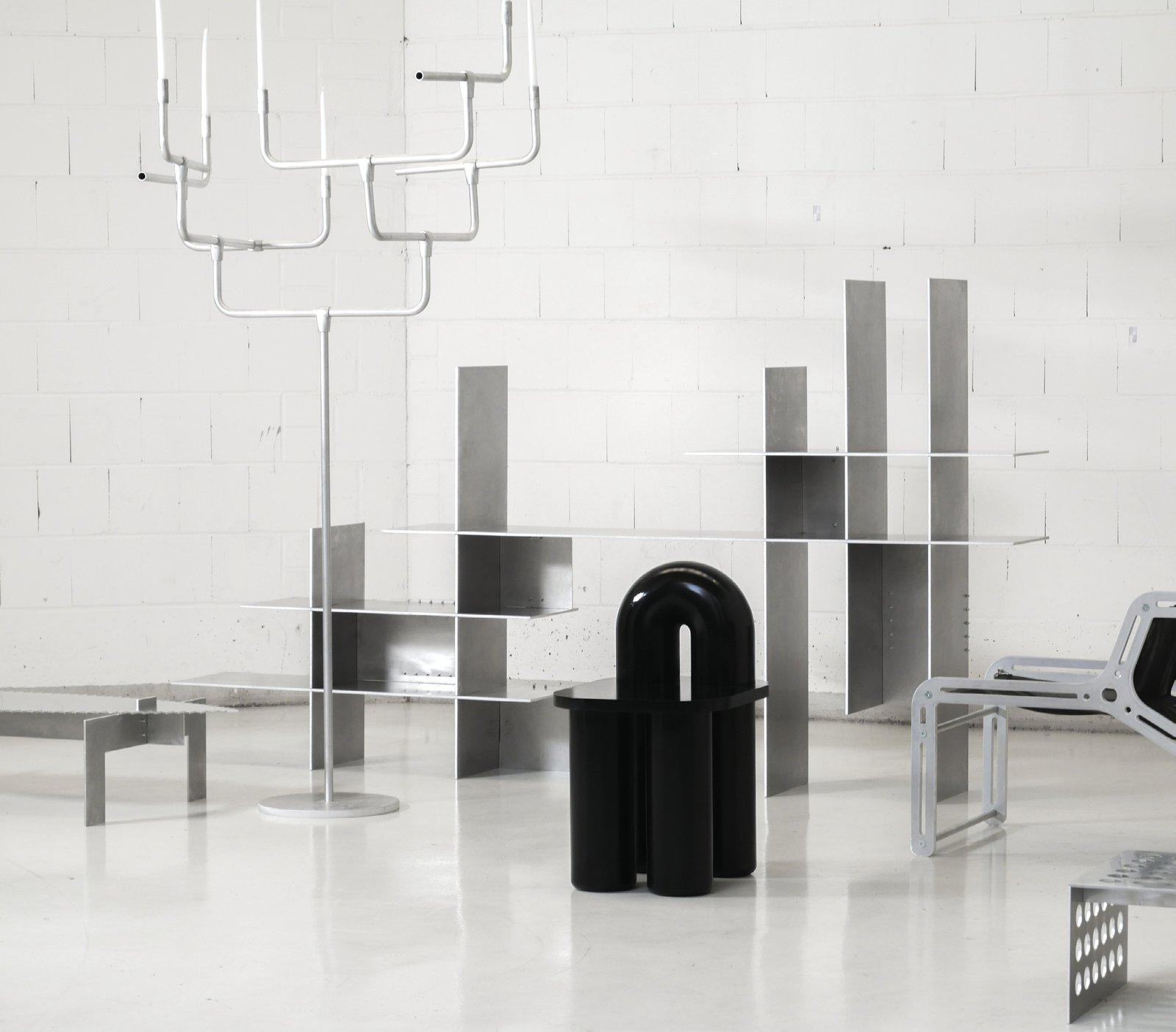 His bachelor project Ecosystems shows how he transforms ideas into tangible form. The collection takes inspiration from the African savannah and translates its systems and structures into a family of interconnected furniture and objects. Each piece represents a different aspect of this environment. The Gazelle Lounger, for instance, captures the dynamic energy of movement within a sculptural aluminum frame and a stretched textile seat. Every visible joint and surface detail adds to a sense of balance and rhythm. Together, the pieces form a coherent installation that feels both functional and poetic.